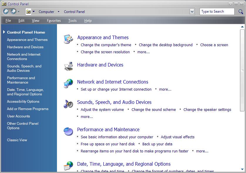 Meiner Meinung nach findet man sich hier besser zurecht als in der Kategorieansicht von XP (Anklicken zum vergrößern)