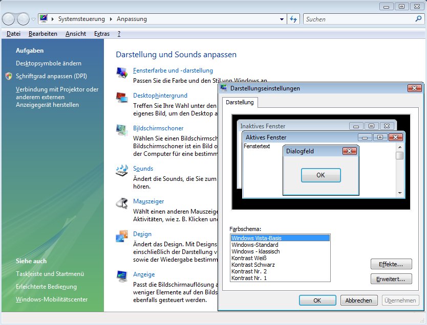 Darstellungsmöglichkeiten wie Windows Vista-Basis (Aero Light). |