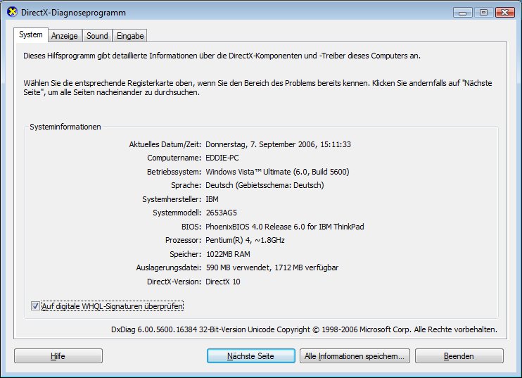 | DirectX-Diagnoseprogramm von DirectX Version 10 |