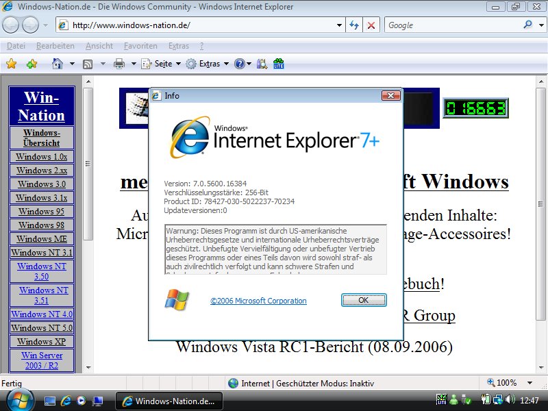 wurde natürlich auch der Internet Explorer 7, welcher in dieser RC1 die