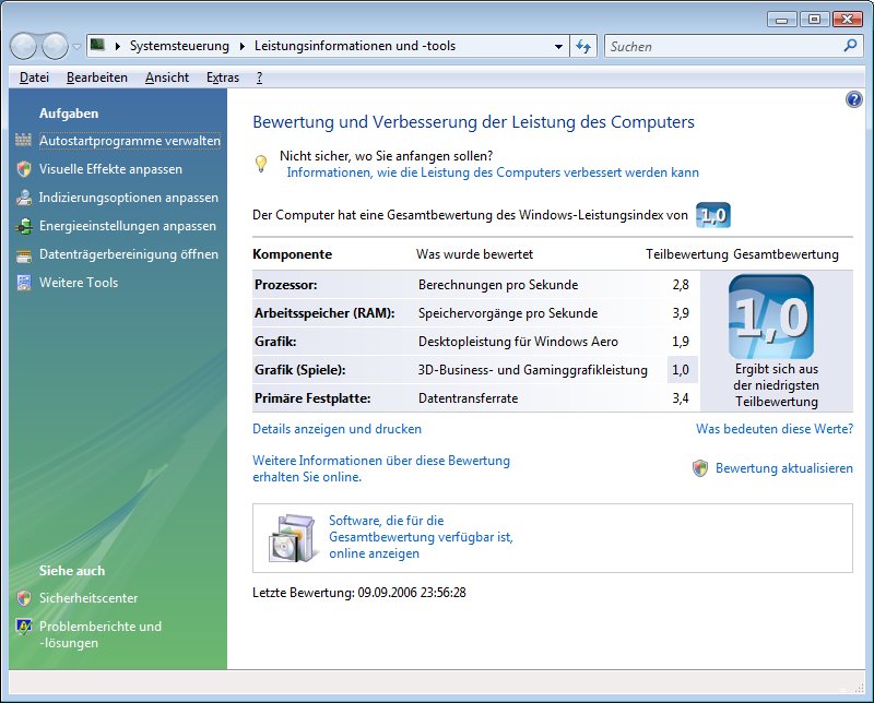 Windows Vista eine Leistungsüberprüfung von einigen Punkten und einer