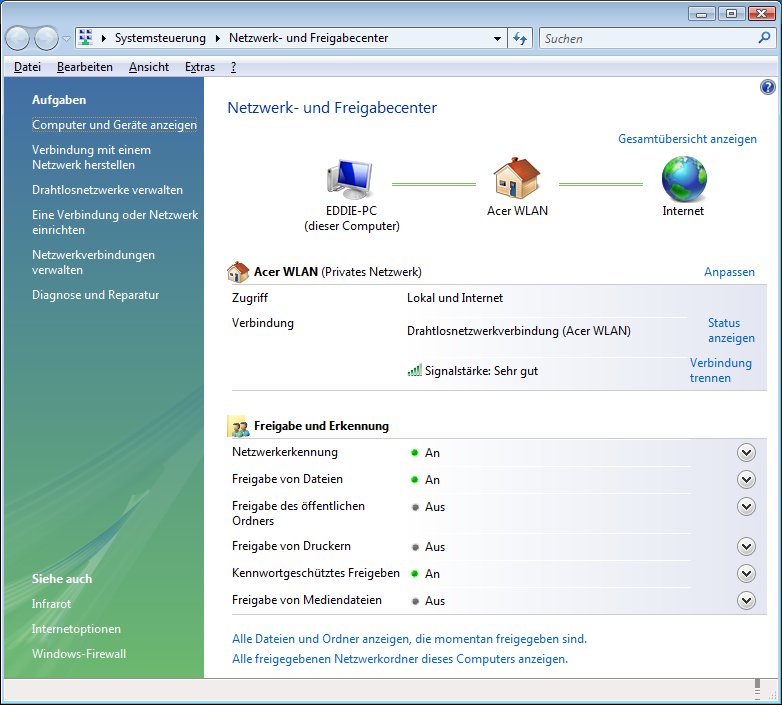 sehr strukutiert. Das neue Netzwerk- und Freigabecenter ist eine wunderbare