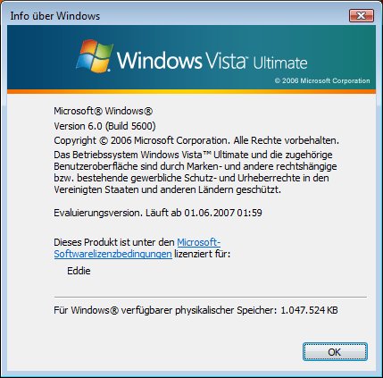 | Info über Windows Vista, nix neues bis auf Version